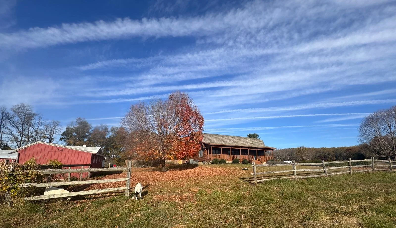 This is a working farm. You may hear the wind move through the fields. You may see goats in the pasture or cats sunbathing on the porch. The sounds, the land, the textures — they are real. That is the point.